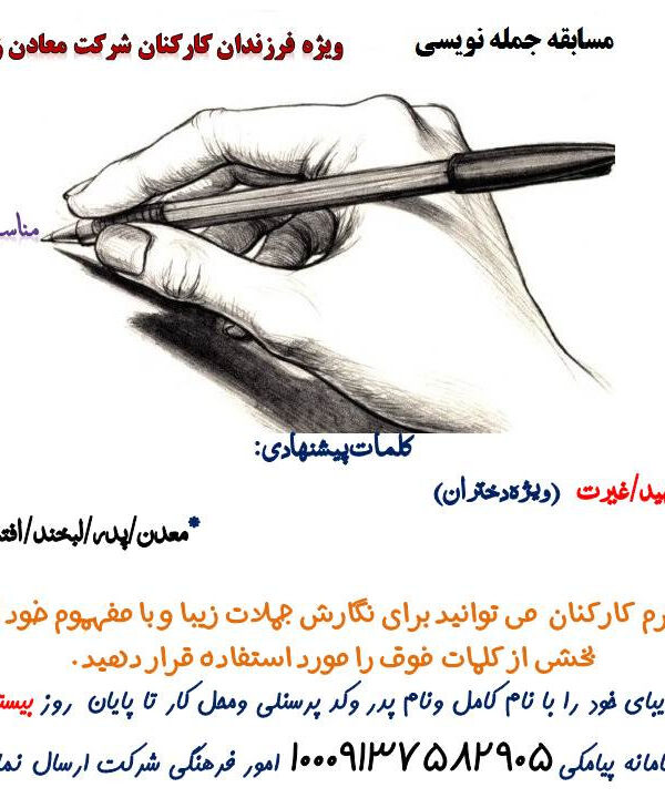 مسابقه ماه مبارک رمضان ویژه فرزندان کارکنان شرکت معادن زغالسنگ کرمانTahanzadeh21 فروردین 1402✍شما فرزندان محترم کارکنان می توانید برای نگارش جملات زیبا و با مفهموم خود از کلمات جدید یا بخشی از کلمات فوق را مورد استفاده قرار ... ادامه مطلب