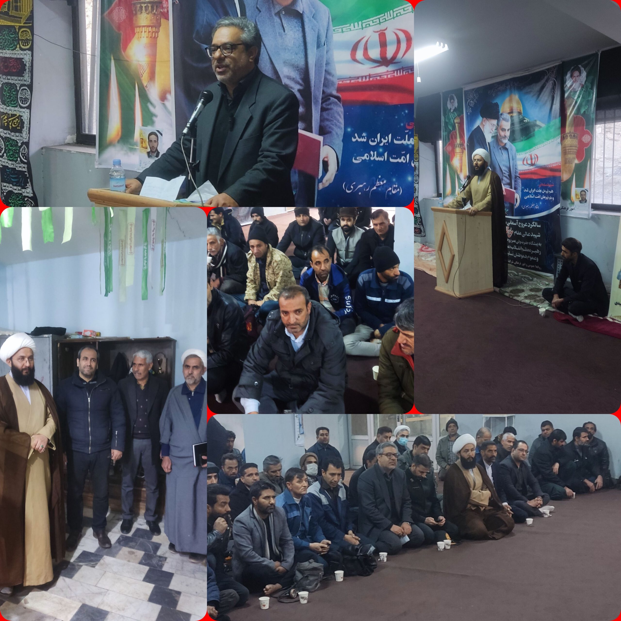 در این جلسه ضمن قرائت قرآن مجید، آقای درویشی نماینده محترم شورای اسلامی کار معدن اصلی ضمن خیر مقدم و ارائه خواسته های جامعه کارگری به مسئولین از حضور عزیزان تقدیر وتشکر نمودند.در ادامه امام جمعه محترم پابدانا با ذکر یاد و خاطره شهید رشیدی ، یکی از وظائف خود را در جایگاه امام جمعه پیگیری مطالبات مجموعه کارگری چه در تربیون نماز جمعه و یا سایر فرصت هابرشمردند.
