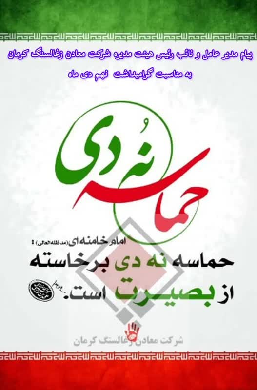 پیام مدیر عامل شرکت معادن زغالسنگ کرمان به مناسبت گرامیداشت نهم دی ماهHanjari9 دی 1403بسمه تعالی ۹دیماه، یکی از نقاط عطف تاریخ انقلاب اسلامی است که باید با ژرفنگری به ابعاد گوناگون آن نگریست. در این روز، ملت ایران ... ادامه مطلب