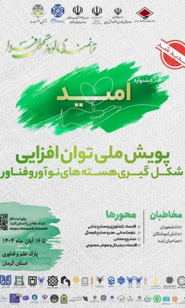 حضور شرکت معادن زغالسنگ و مرکز اموزش علمی کاربردی در جشنواره ملی امید (در محور صنایع ومعادن)Hanjari5 آبان 1404علاقمندان مي توانند از ايده هاي خود را از طريق لينك kstpark.ir/omidr ثبت نمايند ... ادامه مطلب